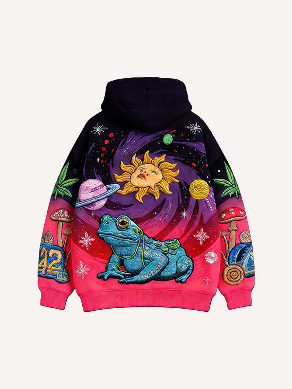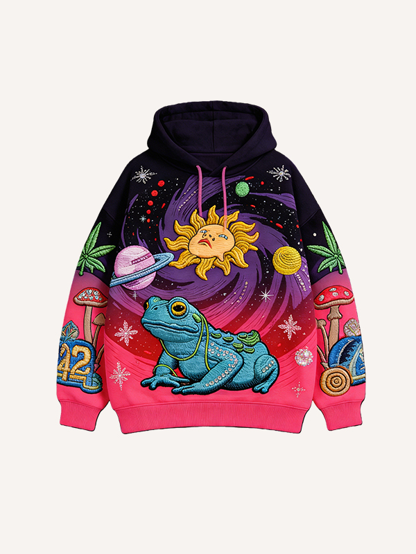 Vintage Print Loose-fitting Hoodie Sweater